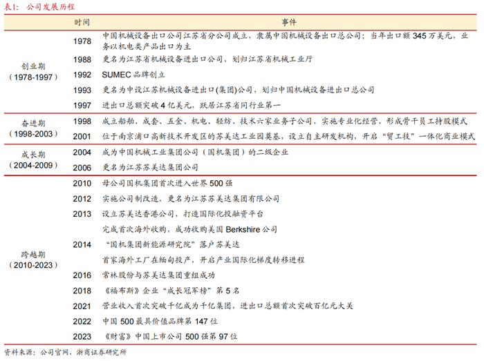 苏美达股份有限公司成立于1978年,是中国机械工业集团有限公司(国机集团)的重要成员企业,经过40余年的发展,已成为一家在产业链拓展与供应链运营领域具备市场规模和品牌影响力的国际化、多元化企业集团。2016年公司于上交所上市,截至2022年底,公司共拥有业务子公司12家、海外机构39家、海内外全资及控股实业工厂29家、在职员工1.6万余人,市场覆盖160多个国家和地区。
