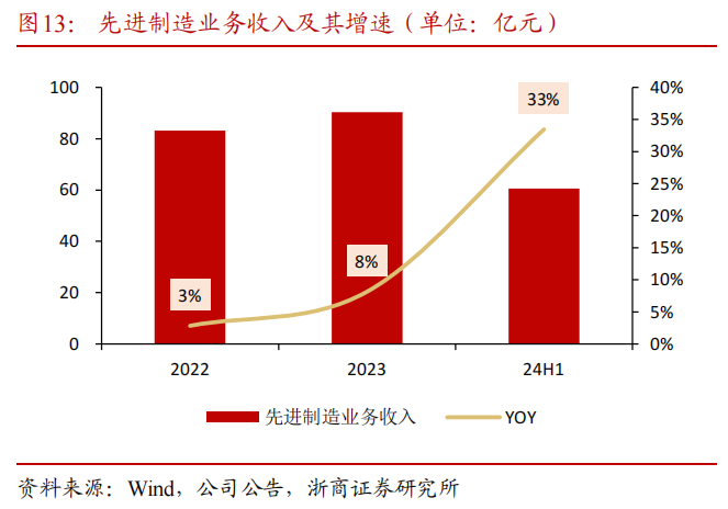2023年公司先进制造板块实现营业收入90.37亿元,其中,船舶制造与航运业务收入占比约49%,毛利率约9.94%。公司的船舶制造业务以新大洋造船有限公司为生产基地,聚焦中型船舶,强化“船舶制造+航运”协同发展模式,两者协同发展。受益于行业上行,公司积极抢抓发展机遇,2024年上半年共计接单 31 艘,同比增长 94%。截至2024H1末,公司在手订单共82艘,生产排期至2028年。