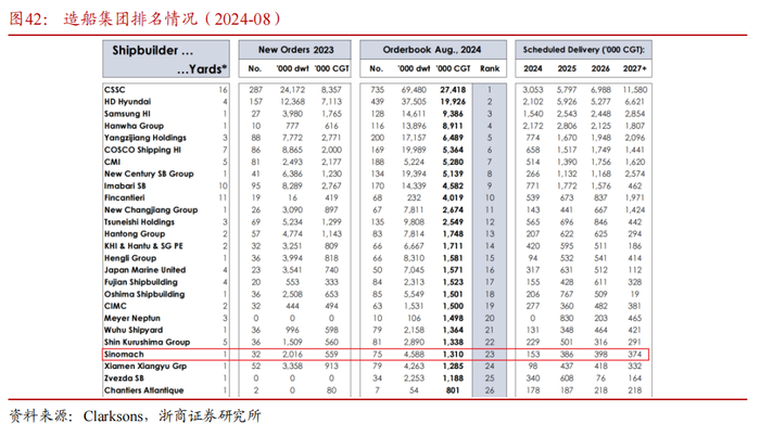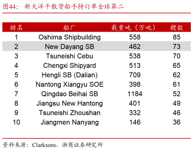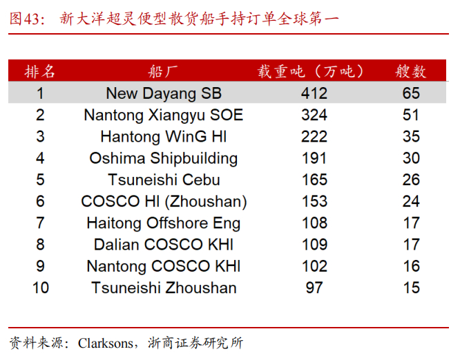 船舶制造是公司制造板块的重要构成,产品涵盖散货船、集装箱船、气体船、油船等,自主设计的“皇冠“系列散货船,性能优异、质量稳定,在同类产品中具有领先优势,受到业内客户卓越评价。截至2024年8月,公司在全球船厂手持订单中排名第23,其中,旗下新大洋造船厂超灵便型散货船手持订单全球第一,干散货船手持订单全球第二。