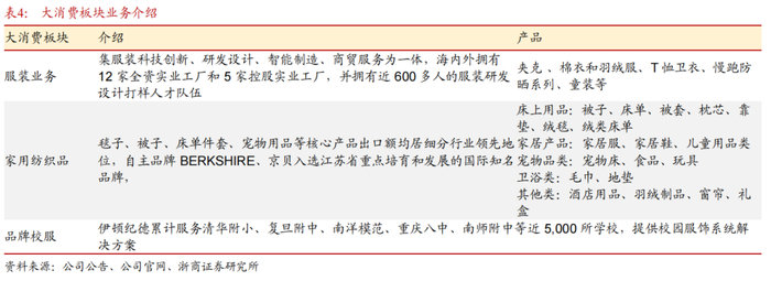 2.3 大消费:强供应链整合,服装、家用纺织、品牌校服多元发展