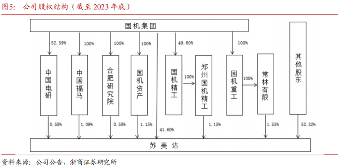 国机集团骨干企业,股东背景实力雄厚。截至2023年末,公司控股股东及实际控制人为中国机械工业集团有限公司(国机集团),合计持股比例约41.6%,国机集团由原机械工业部70多家科研设计院所、装备制造和工贸企业沿革发展而来,目前拥有29家直接管理的二级企业,12余万从业人员,13家上市公司,连续多年位居中国机械工业百强首位。