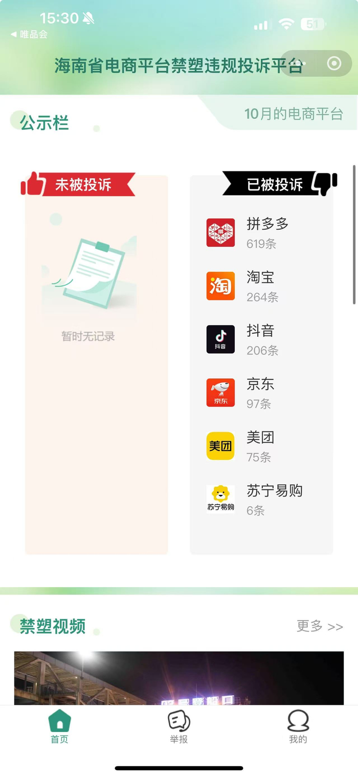 3.通过微信小程序搜索“海南省电商平台禁塑违规投诉”进行举报;