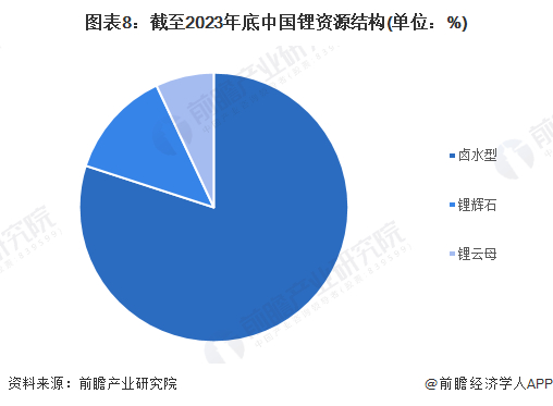 从原料端来看,锂资源在自然界中以多种形式存在,包括卤水型(盐湖卤水、地热卤水等)、硬岩型(锂辉石、锂云母、磷锂铝石等)、黏土型(锂黏土等)等。我国锂资源主要由盐湖、锂辉石及锂云母构成,其中,盐湖锂资源占锂总量的80%,主要集中在青海和西藏地区;此外,锂辉石资源占13%,锂云母资源占7%。