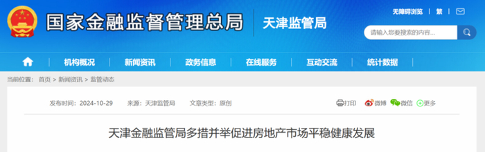 10月29日,天津金融监管总局公布了多措并举稳楼市的最新进展。