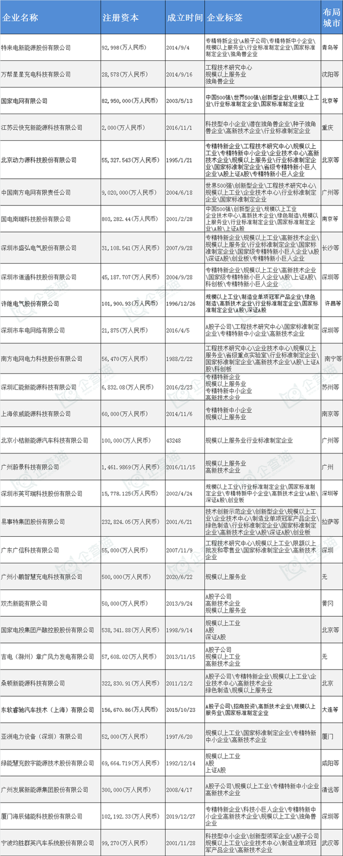 那么,在国内电动汽车充电桩产业主要企业动向如何呢?(数据来源:企查猫,排名不分先后)