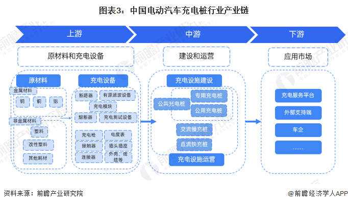 从充电桩产业链来看,建设到运营涉及多个环节和参与者。上游为充电桩及充电站建设所需设备的生产商,包括主要材料供应企业和充电设备生产商;中游为充电站建设和运营商,负责充电桩和充电站的建造和运营;下游为整体解决方案商,提供充电桩位置服务、预约支付功能以及充电桩运营管理平台和解决方案。这些从业者在产业链中往往身份重合,同时涉足多个功能领域。
