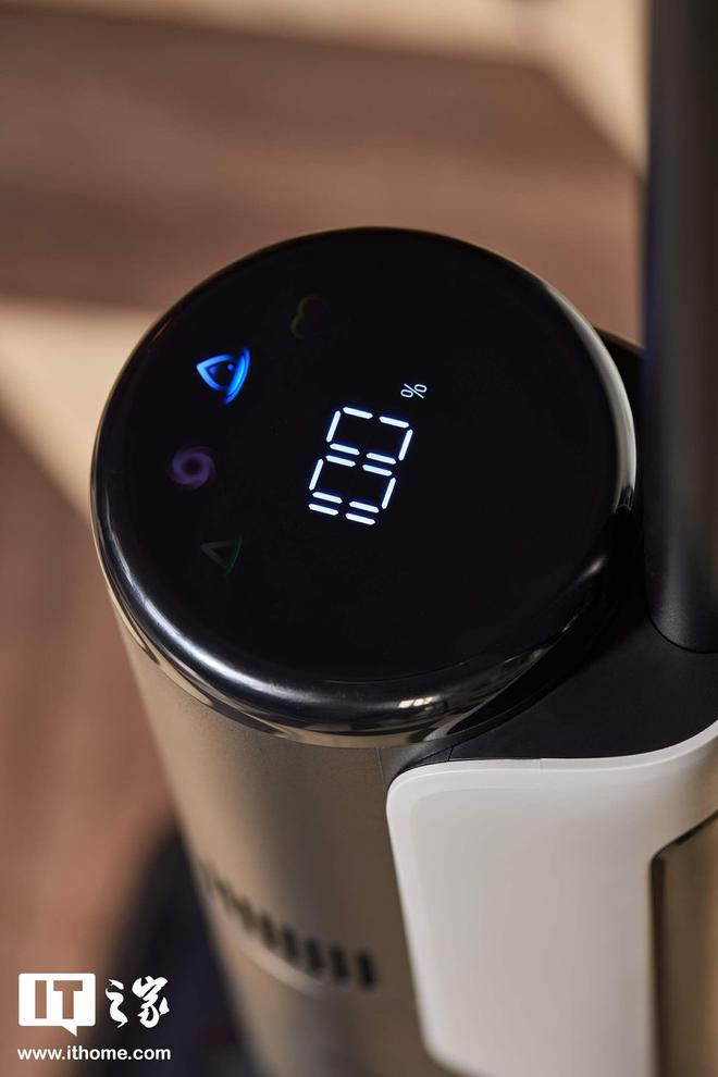 追觅 T40 Ultra 的 LED 屏幕位于机身主机顶部,也是手柄区域的正下方,用于显示电量状态、清洁模式等信息。在智能屏之外,追觅 T40 Ultra 也支持智能语音提示。