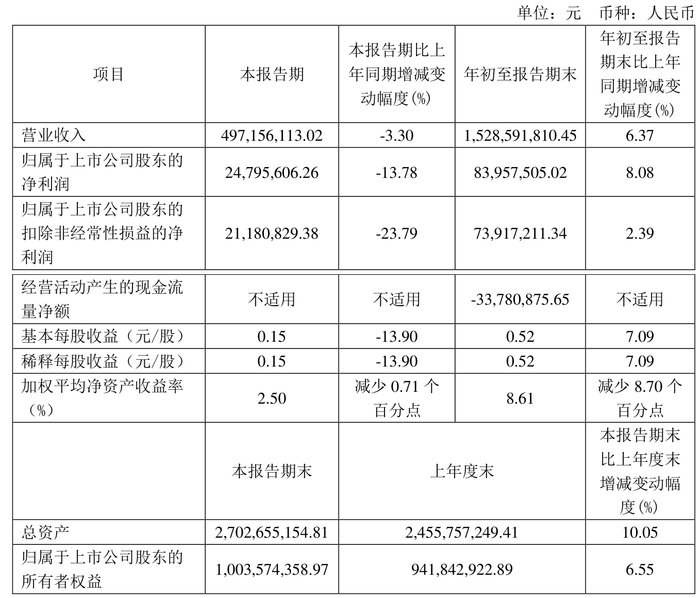 中证智能财讯洛凯股份(603829)10月31日披露2024年第三季度报告。前三季度公司实现营业收入15.29亿元,同比增长6.37%;归母净利润8395.75万元,同比增长8.08%;扣非净利润7391.72万元,同比增长2.39%;经营活动产生的现金流量净额为-3378.09万元,上年同期为1992.26万元;报告期内,洛凯股份基本每股收益为0.52元,加权平均净资产收益率为8.61%。