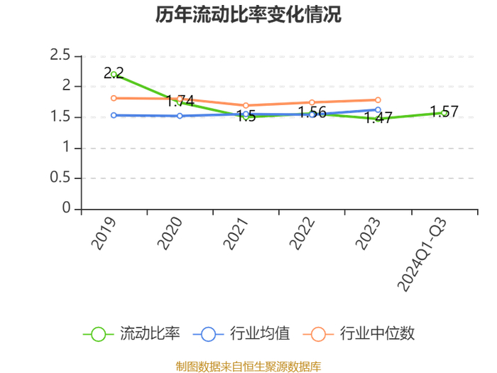 2024年前三季度,公司流动比率为1.57,速动比率为1.24。