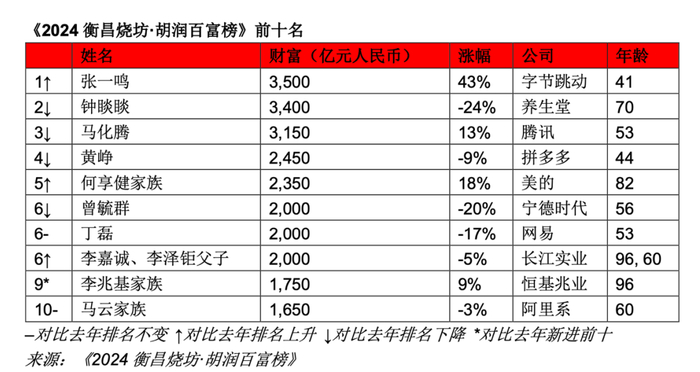 10月29日,2024年胡润百富榜公布。41岁的张一鸣取代钟睒睒,以3500亿元第一次成为中国首富。娃哈哈接班人宗馥莉则取代邝肖卿成为中国女首富,财富810亿元。