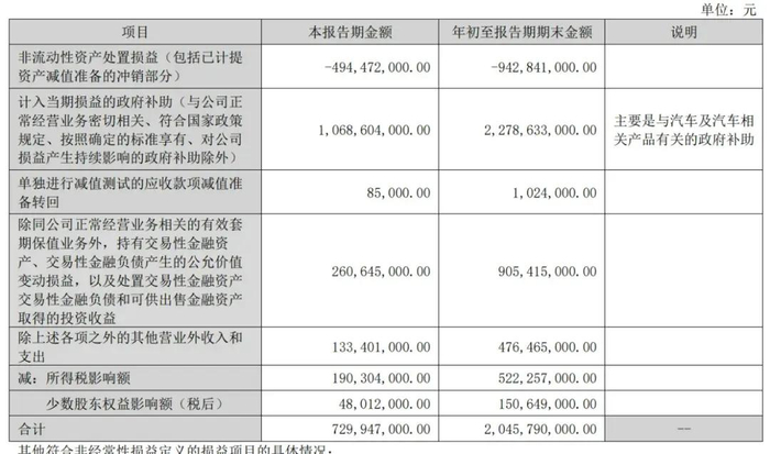 比亚迪2024年前三季度计入的政府补助为22.79亿元,其中,第三季度计入的政府补助为10.69亿,主要是与汽车及汽车相关产品有关的政府补助。