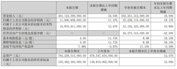比亚迪2024年第三季营收为2011.25亿元,同比增长24%;净利为116.07亿元,同比增长11.47%;扣非后净利为108.77亿元,同比增长12.67%。