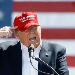 ◆特朗普在竞选集会上演讲时,头戴着官方网站贩卖的MAGA帽子周边。