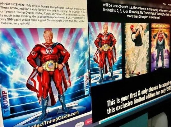 ◆购买99美元的NFT交易卡能参加一系列抽奖活动,例如有机会与特朗普见面,或在他的一处房产打高尔夫球。