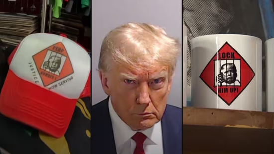 几乎同一时间,特朗普的支持者和反对者开始了对该照片的商业化利用,将其印在T恤、海报、马克杯乃至玩偶上。在网购平台上,“特朗普被捕”的搜索词下有数百件周边商品在售。