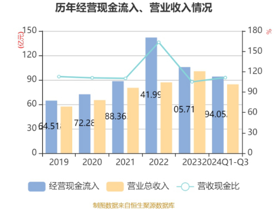 在经营活动产生的现金流量净额方面,片仔癀也面临一定的挑战。2024年前三季度,公司经营活动产生的现金流量净额为12.99亿元,同比下降45.41%。现金流净额的下滑可能对公司的偿债能力产生一定影响。截至2024年三季度末,片仔癀的合计负债为33.86亿元,同比上升33.5%,资产负债率也较去年同期增加了3.07个百分点。