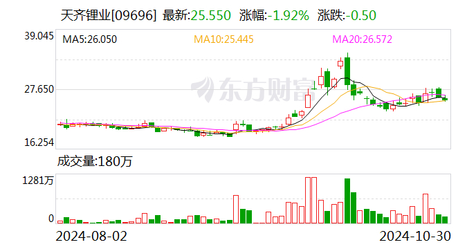 天齐锂业三季度亏损4.96亿元 同比降130.11%