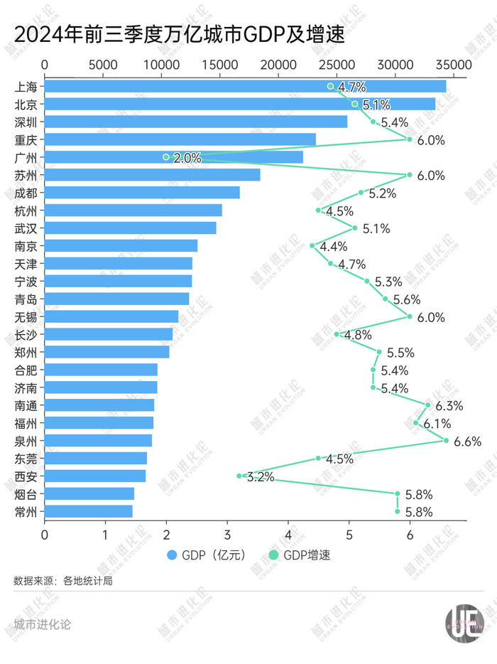截至目前,全国26座万亿城市除佛山外,均已公布前三季度经济数据。其中,合肥GDP达到 9697.1亿元,同比增长5.4%,高于全国0.6个百分点;规上工业增加值增速更达到15.2%,高出全国9.4个百分点,领跑万亿城市。