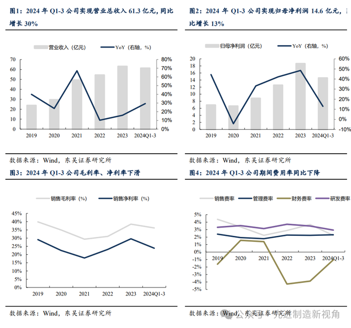 2024年前三季度公司实现营业总收入61.3亿元,同比增长30%,归母净利润14.6亿元,同比增长13%,扣非归母净利润14.8亿元,同比增长19%。单Q3公司实现营业总收入23亿元,同比增长38%,归母净利润6.4亿元,同比增长38%,扣非归母净利润6.2亿元,同比增长45%,非经主要受宏信建发股份影响。公司业绩高增,我们判断系(1)海外市场拓展顺利,高端臂式放量,CMEC并购增厚业绩,(2)去年Q3有汇兑损失,剔除该影响,Q3公司归母净利润同比增长约18%。