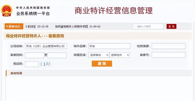 那么京油(北京)企业管理有限公司发展如此之迅猛,是否取得商务部商业特许经营备案呢?记者通过检索并未发现该公司的备案信息。