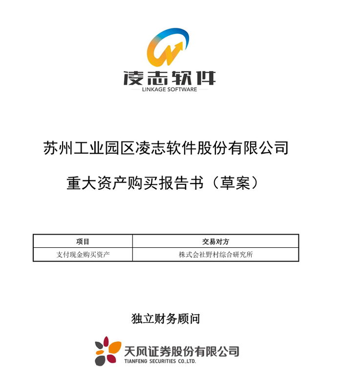 2023年9月8日,凌志软件发布《重大资产购买报告书(草案)》,拟通过现金方式购买某两家公司100%的股权。