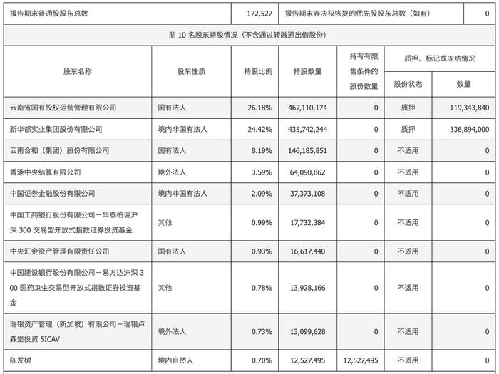 云南白药2024年三季报显示,陈发树控股的新华都集团持股24.42%,仍为公司第二大股东。因此,陈发树成为云南白药混改中的重要角色。云南白药也由此前国资控股的局面,转变为无实际控制人且无控股股东的格局。