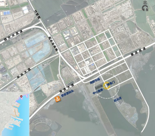 该选点位于滨海新区汉沽中心渔港内,北临津汉快速路,西接中央大道,海滨大道穿港而过。依靠海滨高速以自驾为主,前往便利。