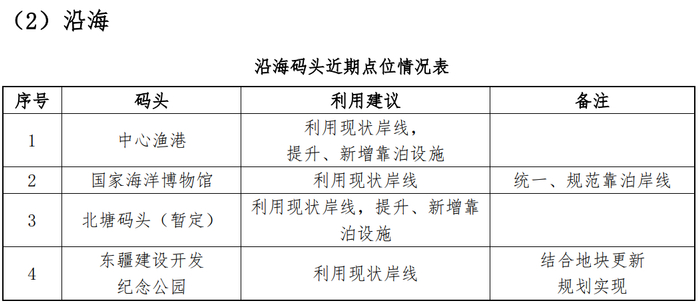 其中马棚口水域虽对出海航行旅游发展需求较大,但与南港工业区的发展定位、生态红线和生态保护区等重要因素冲突,对建设行为和航线使用有限制,建议马棚口水域码头选址应结合相关规划综合考虑,单独选址。