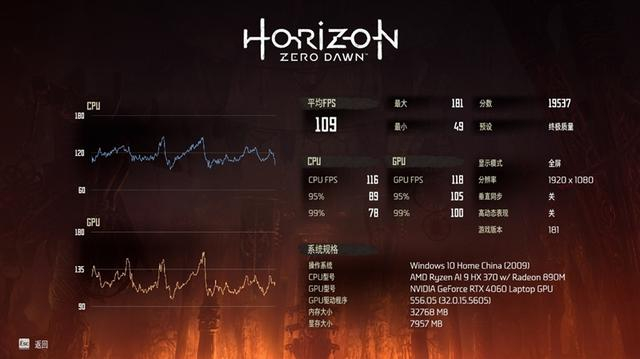 在《地平线:零之曙光》1080P+预设终极质量画质下,平均帧数为109 FPS。