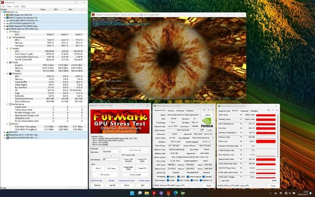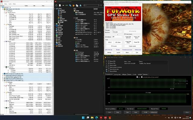 在GPU烤机的基础上,同时使用AIDA64进行FPU烤机,进行10分钟的烤机测试。