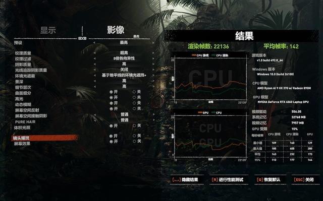 在《古墓丽影:暗影》1080P+预设最高画质+DX12,平均帧数为142 FPS。