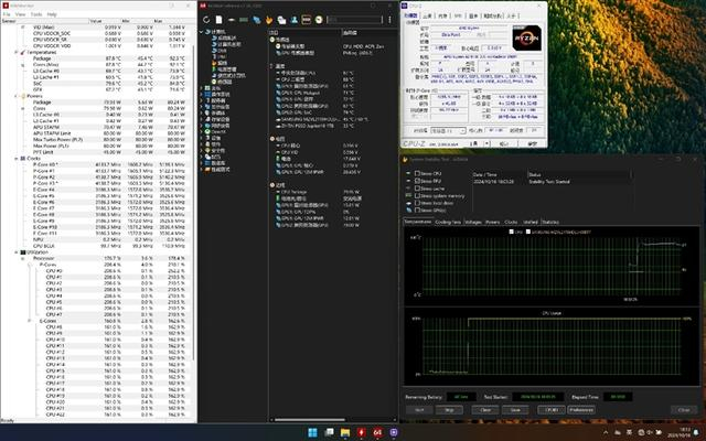 得益于创新的Zen 5+Zen 5c架构混合核心设计,能效表现也极为出色。烤机测试时仅依靠笔记本自身的散热就可以将稳定在80W工作的CPU控制在87度的温度上,温度和性能得到了很好的平衡。