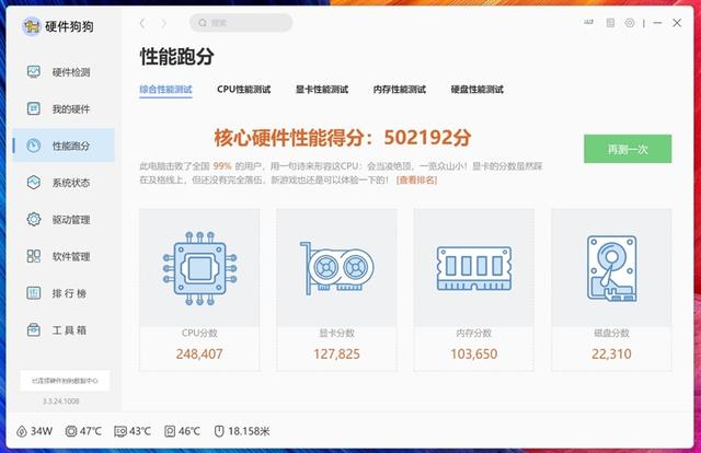 硬件狗狗是驱动之家出品的一款专业硬件检测、跑分工具,非常适合主流PC玩家。其依托快科技自研算法,以及3DMark等权威测试模块,可以快速、准确、全面检测PC电脑的整体配置、对电脑的处理器、显卡、内存、硬盘进行单项、综合测试,考察整机性能,并通过全球性能排行,一测便知自己设备的性能水平如何。