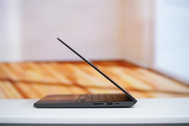 B面就是这块最亮眼的16英寸16:10的OLED屏幕,3840 x 2400分辨率,0.2ms响应时间,100% DCI-P3 色域, 1,000,000:1, 10.7亿色数,通过潘通色彩认证, TÜV 低蓝光认证,即保证了设计工作所需要的高精度色彩还原,也能有效保护视力。