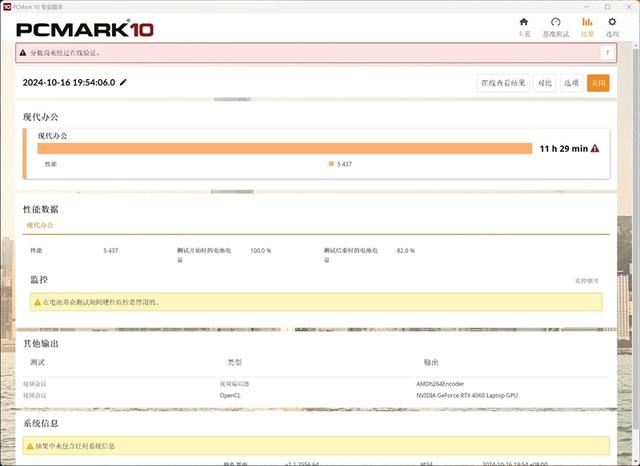 华硕ProArt创16 2024内置了90Wh容量的大电池,续航测试选择的场景为PCMark 10现代办公。,将笔记本模式设置为“安静”,同时将Windows的屏幕亮度调整为50%。