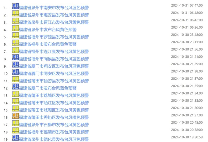 福建多地发布台风预警