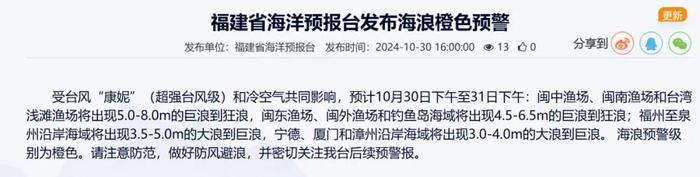 发布海浪橙色预警