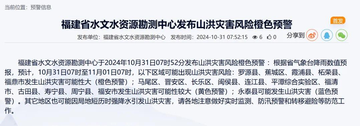 福建省气象台10月31日06时38分