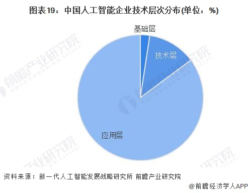 我国人工智能行业主要以应用层企业为主,与基础层和技术层相比竞争更为激烈。在2200家人工智能骨干企业中,基础层企业仅有53家,占比为2.41%。这些企业在人工智能产业中提供基础硬件设备和数据服务。而技术层企业有273家,占比为12.41%,主要从事包括核心算法、开发平台等在内的关键技术的研发。与之相比,应用层企业占比高达85.18%,达到1873家,主要涉及人工智能技术的集成和场景应用。