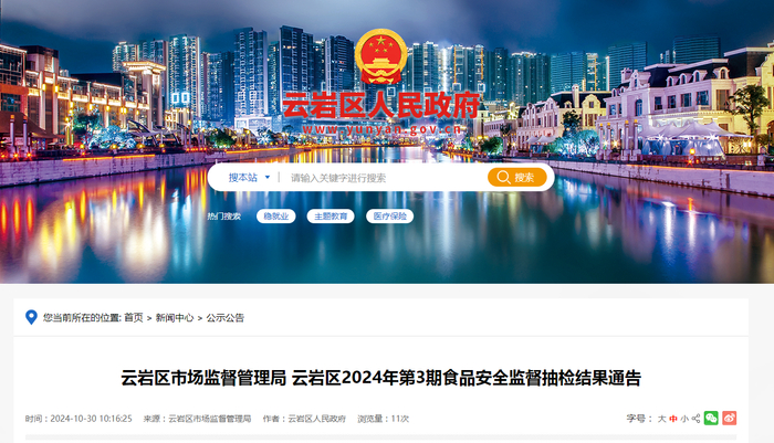 贵州省贵阳市云岩区市场监督管理局发布云岩区2024年第3期食品安全监督抽检结果