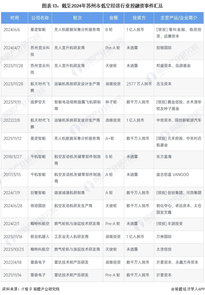 2024年以来苏州市低空经济行业投融资事件汇总如下: