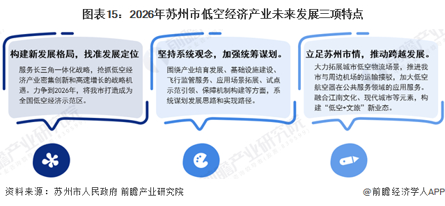为抢抓经低空经济高速发展的战略机遇期,因地制宜发展新质生产力,苏州市人民政府发布《苏州市低空经济高质量发展实施方案(2024—2026年)》,《实施方案》中提出到2026年,聚集产业链相关企业500家,产业规模达600亿元。发展特点主要有以下三项: