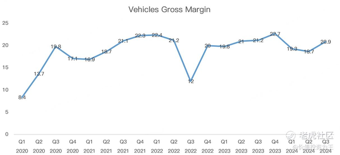 三季度造车业务毛利率20.9%,高于分析师预期的20.2%: