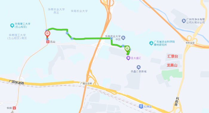 另外,汇景新城没有地铁,从汇景新城最近的西区棕榈园步行导航到3号线五山站,距离也超过2公里。位于最东侧的汇景台就更不用说了。