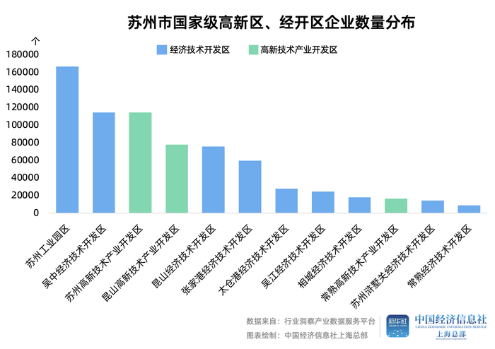 行业洞察系统数据显示,苏州市共有国家级高新区、经开区共12个,分别是常熟高新技术产业开发区、常熟经济技术开发区、昆山高新技术产业开发区、昆山经济技术开发区、苏州高新技术产业开发区、苏州工业园区、苏州浒墅关经济技术开发区、太仓港经济技术开发区、吴江经济技术开发区、吴中经济技术开发区、相城经济技术开发区、张家港经济技术开发区。其中,苏州工业园区企业数量最多,近17万家。