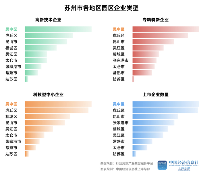 值得一提的是,吴中区作为苏州市企业总量最多的区域,也同时在各个细分科技企业类型上都处于领先地位,尤其是在高附加值、高成长性、可持续发展的科技企业方面体现出显著优势,其高质量发展的背后依托的是体系化的政策支持以及完善的创新生态系统。