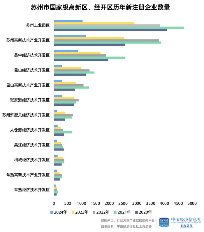 截至2023年,根据“科学研究和技术服务业”分类标准,国家级高新区、经开区新注册科技企业近12万家。其中,苏州工业园区近五年新增企业数量累计1.7万家。