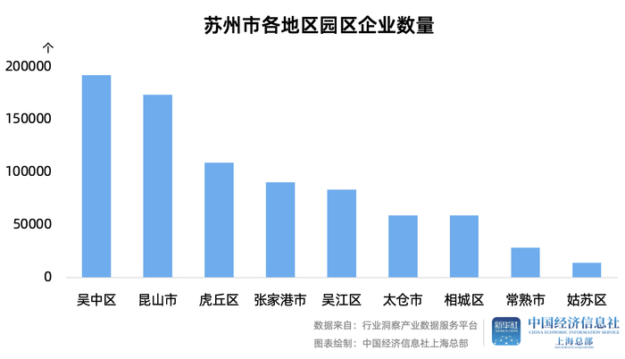 从行业分布角度来看,总体布局以批发和零售业、科学研究和技术服务业、租赁和商务服务业、以及制造业为主,呈现出商贸、服务与制造并重的多元化发展格局,在保障传统产业延续性的同时,也为未来的产业升级、现代化和多元化奠定了基础。苏州市正在积极推动产业集群、研发创新及数字化转型等战略,以培育更高效、更具竞争力的园区经济模式。
