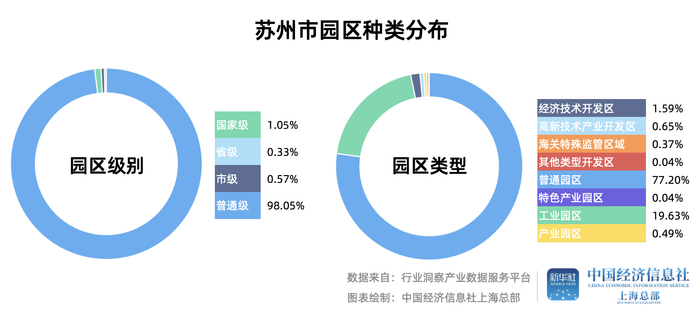 基于行业洞察系统数据分析,从园区种类分布来看,总体布局呈现出高级别、专业化或特色化园区为核心引擎、普通园区为主体驱动的发展模式。占主体地位的普通园区涵盖了产业基础、低成本制造和传统行业,支撑着整体地方经济和产业发展。而随着高质量发展需求的提升,苏州也在大力推动高技术含量、高附加值的园区建设,集中在苏州工业园区和重点区域的一批高级别、专业化或特色化园区正在崛起,成为了区域内经济和技术创新的核心引擎。