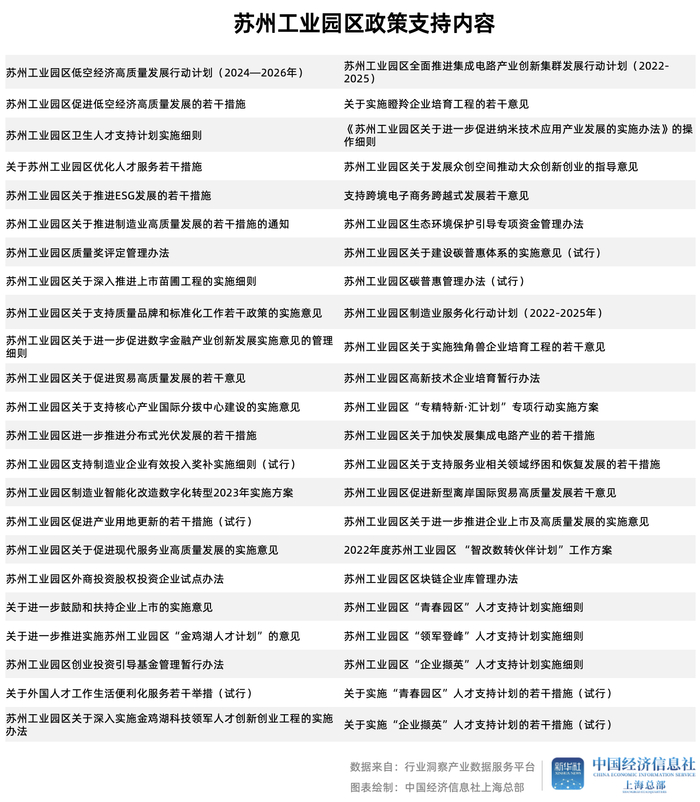 近年来,苏州工业园区出台了一系列对于战略重点产业以及人才的政策支持文件,如“低空经济高质量发展行动计划”、“集成电路产业创新集群发展行动计划”等;再如“制造业智能化改造数字化转型”,以及“服务业相关领域纾困和恢复发展”,以促进传统产业的升级和新兴产业的发展;通过“瞪羚企业培育工程”和“独角兽企业培育工程”,鼓励高成长性企业的快速发展,促进产业创新和集群发展。同时,苏州工业园区还实施“卫生人才支持计划”、“金鸡湖人才计划”和“领军登峰”等人才支持计划,吸引和留住高端人才,提升园区的人才竞争力。